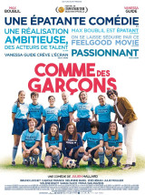 Hallard assume également une dimension potache très réussie, multipliant les gimmicks purement humoristiques – un mari-supporter présent sur le bord du terrain qu’il pleuve ou qu’il vente, hurlant sa joie à chaque action de sa femme ; une héroïne (Vanessa Guide) remontant ses lunettes sur son nez avec son majeur, décochant systématiquement un doigt d’honneur à son patron qu'elle déteste (Max Boublil). Comme des garçons évite cependant la lourdeur grâce à son rythme flottant, d’une maladresse intentionnelle qui ajoute au charme du film.
