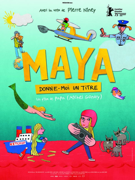 Maya et son papa vivent dans deux pays différents. Pour maintenir le lien avec sa fille et continuer à lui raconter des histoires, son papa lui demande chaque soir « Maya, donne-moi un titre ». À partir de ce titre, il lui fabrique alors un dessin animé dont elle est l’héroïne. À travers ces aventures racontées par Pierre Niney, Michel Gondry donne vie à un voyage poétique et amusant qui fera rêver les petits… et sourire les grands.